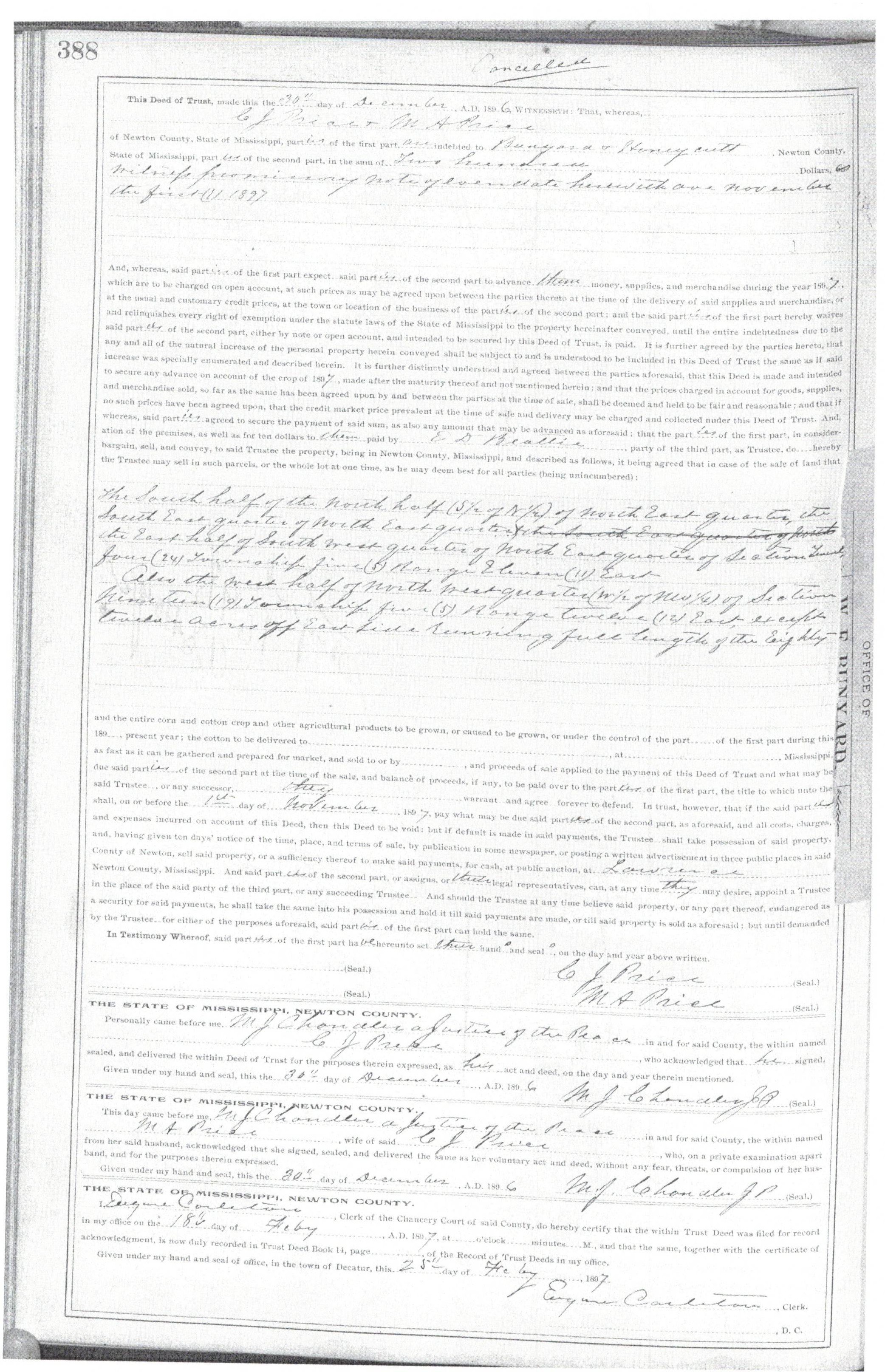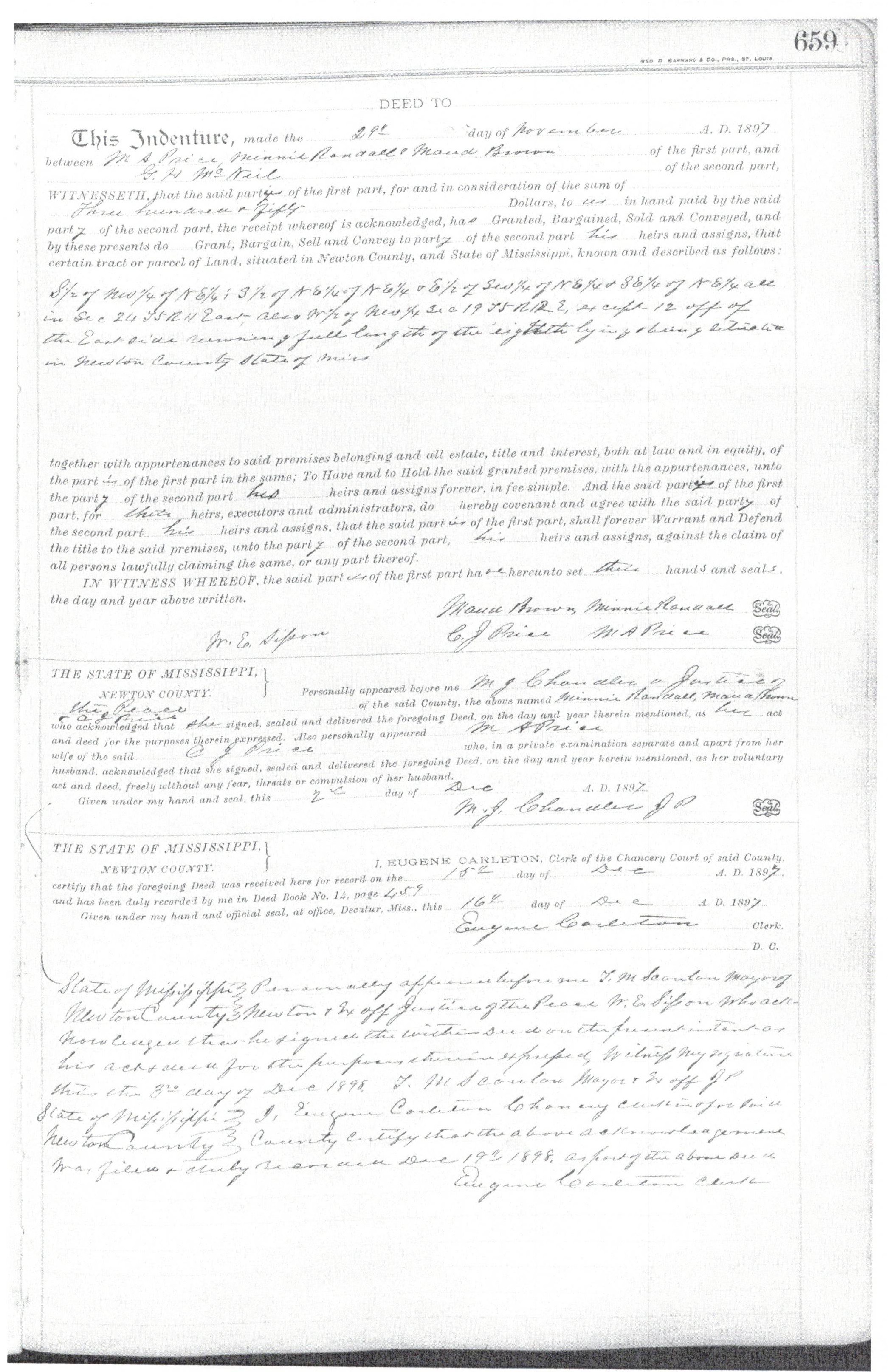 | $51 | 38 | C.J. Price & wife. M. A. | Thomas Watson | 1889 | 16 | 385 – 386 |