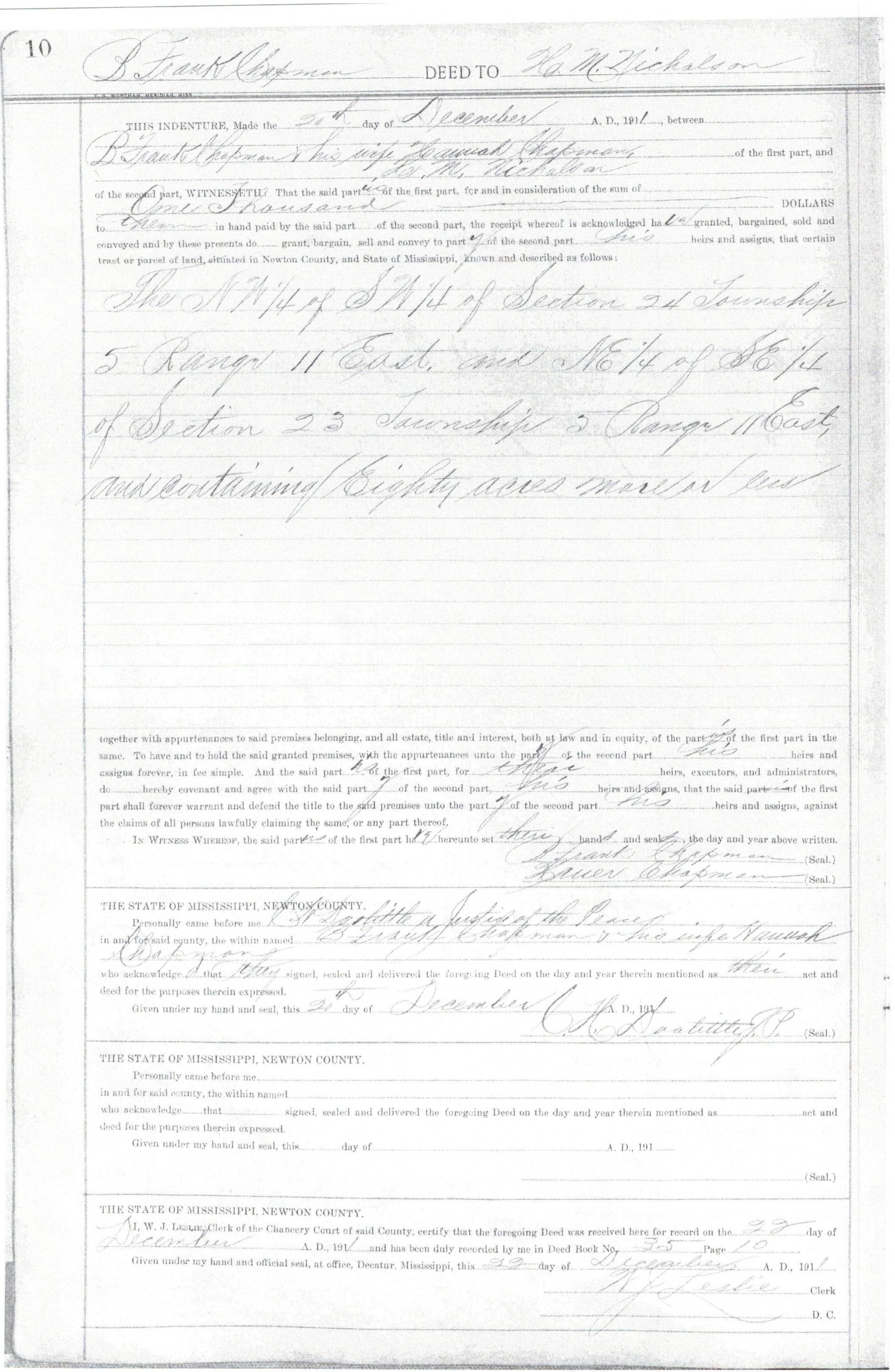 | $1000 | 18 | B. Frank Chapman & wife Hanah | H.M. Nicholson | 1911 | 35 | 10 |