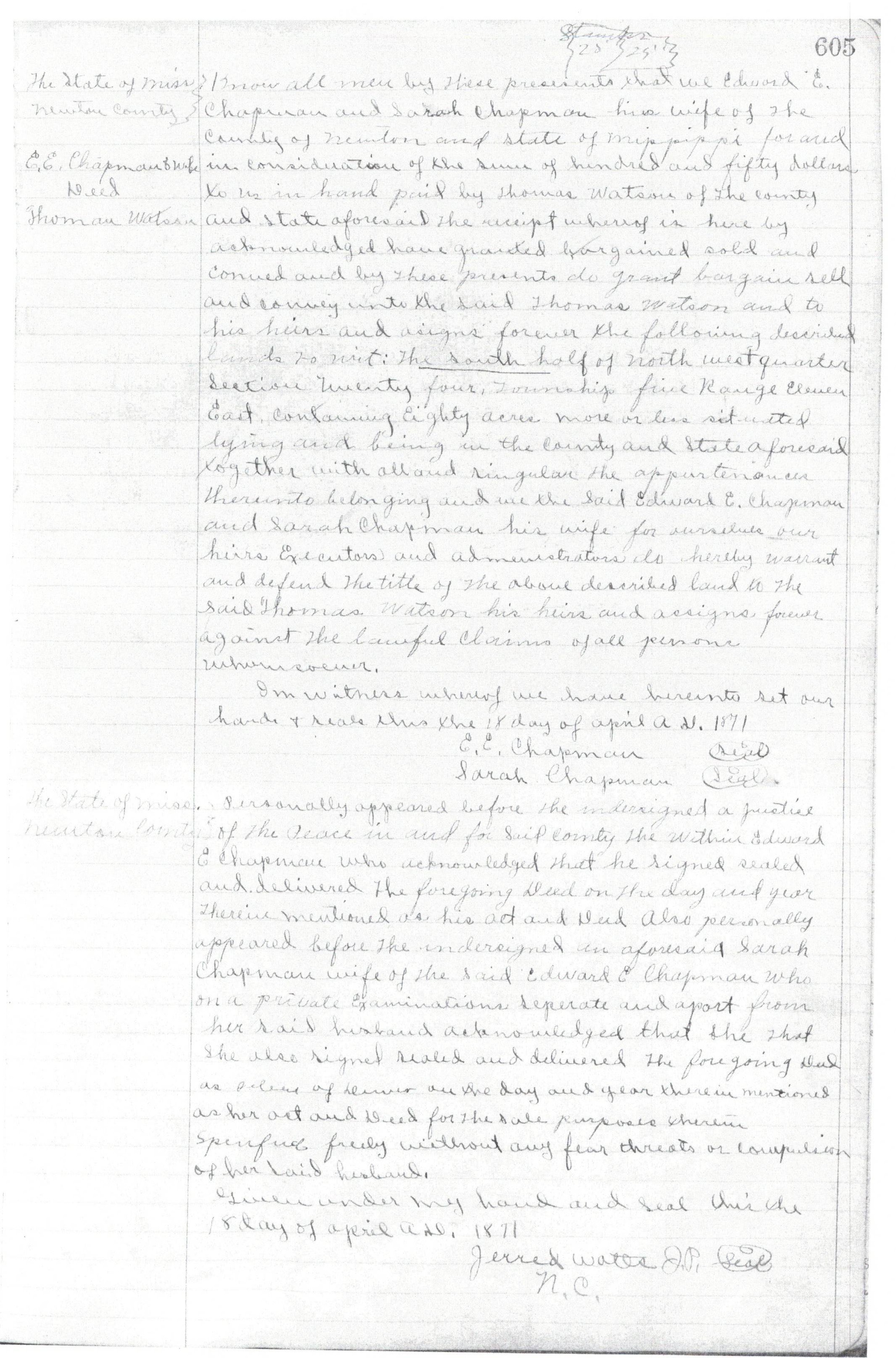 | $150 | 22 | E.E. Chapman & wife Sarah | Thomas Watson | 1871 – 1916 | 37 | 605 — 606 |