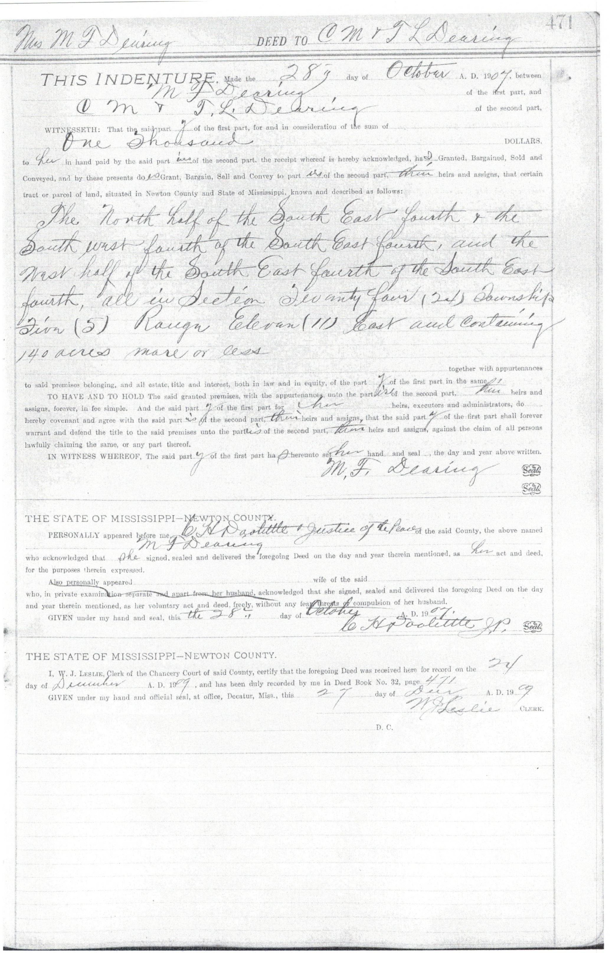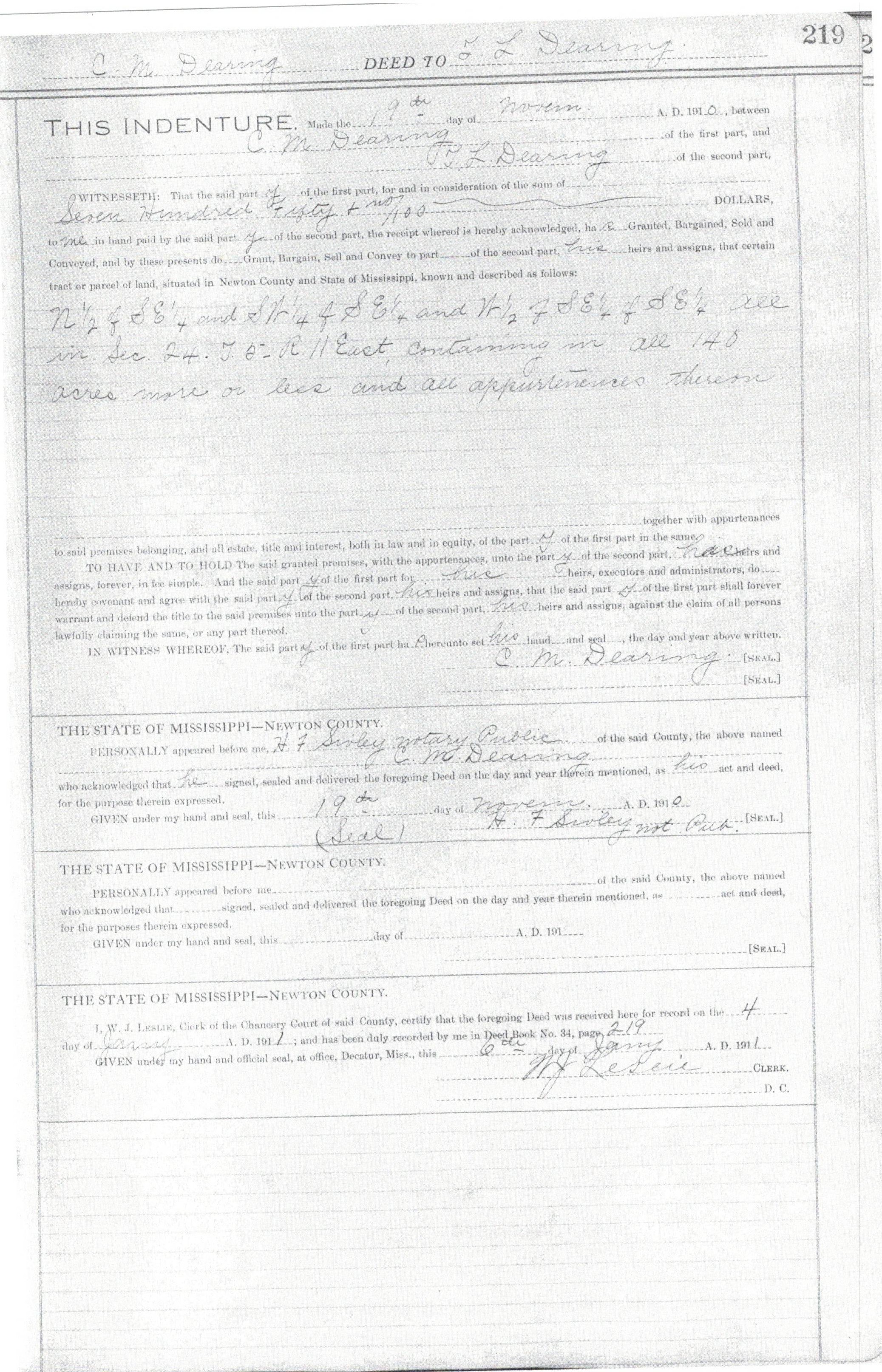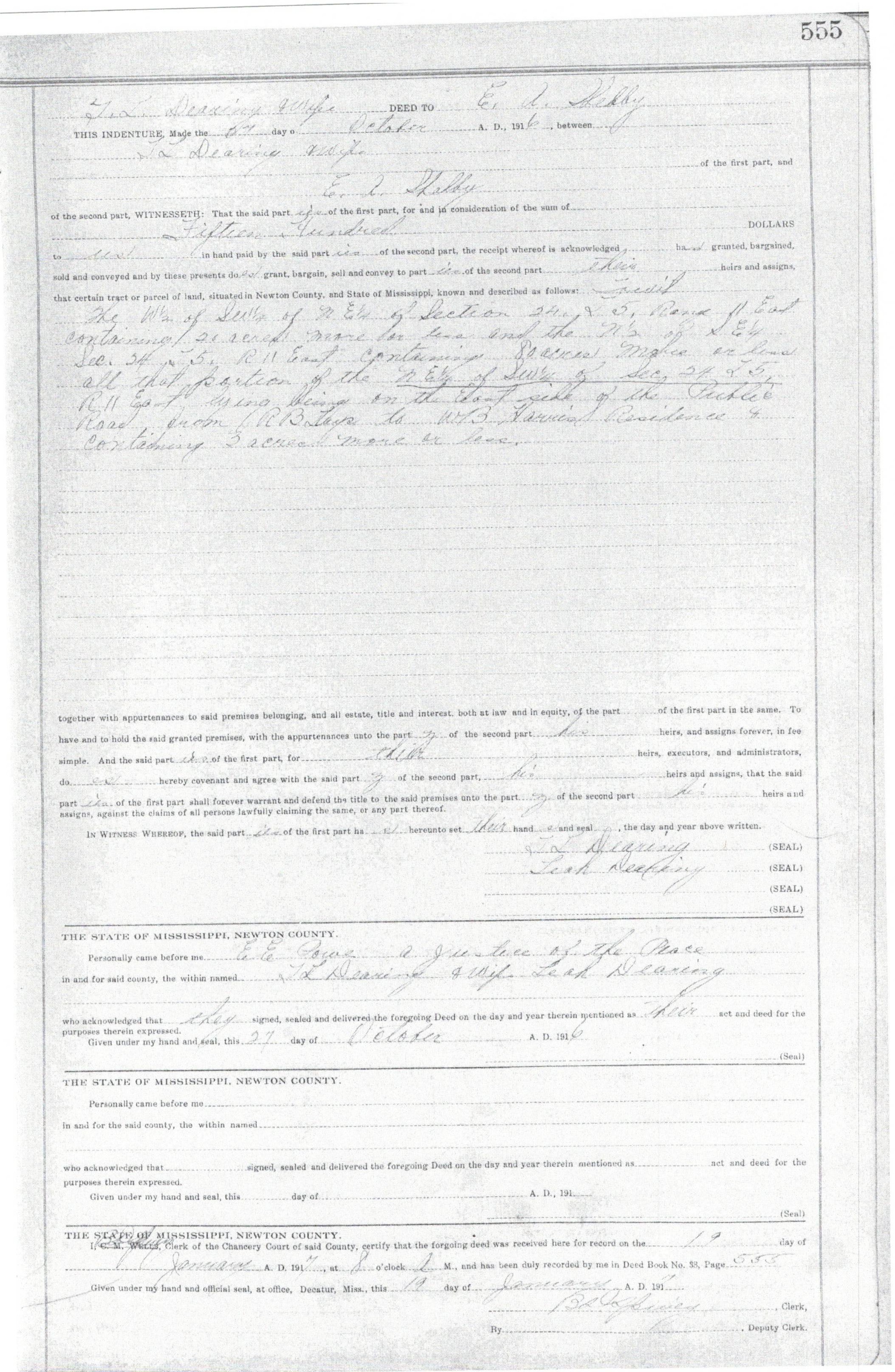 | $1500 | 24 | T.L. Dearing & wife | E.A. Shelby | 1916 | 38 | 555 |