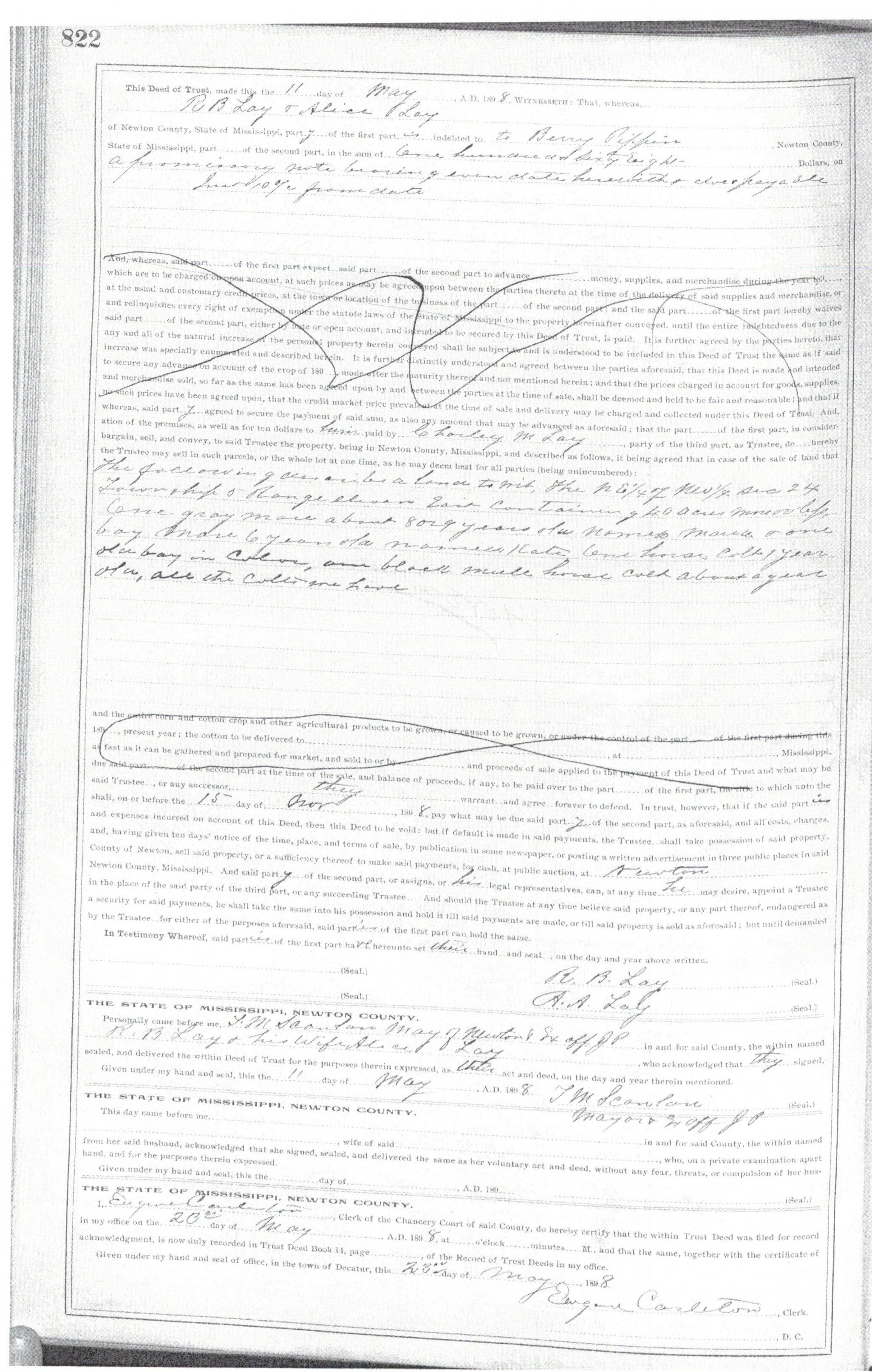 | $250 | 20 | R.B. Lay & wife Annie J. | L.F. Lay | 1913 | 36 | 157 |
