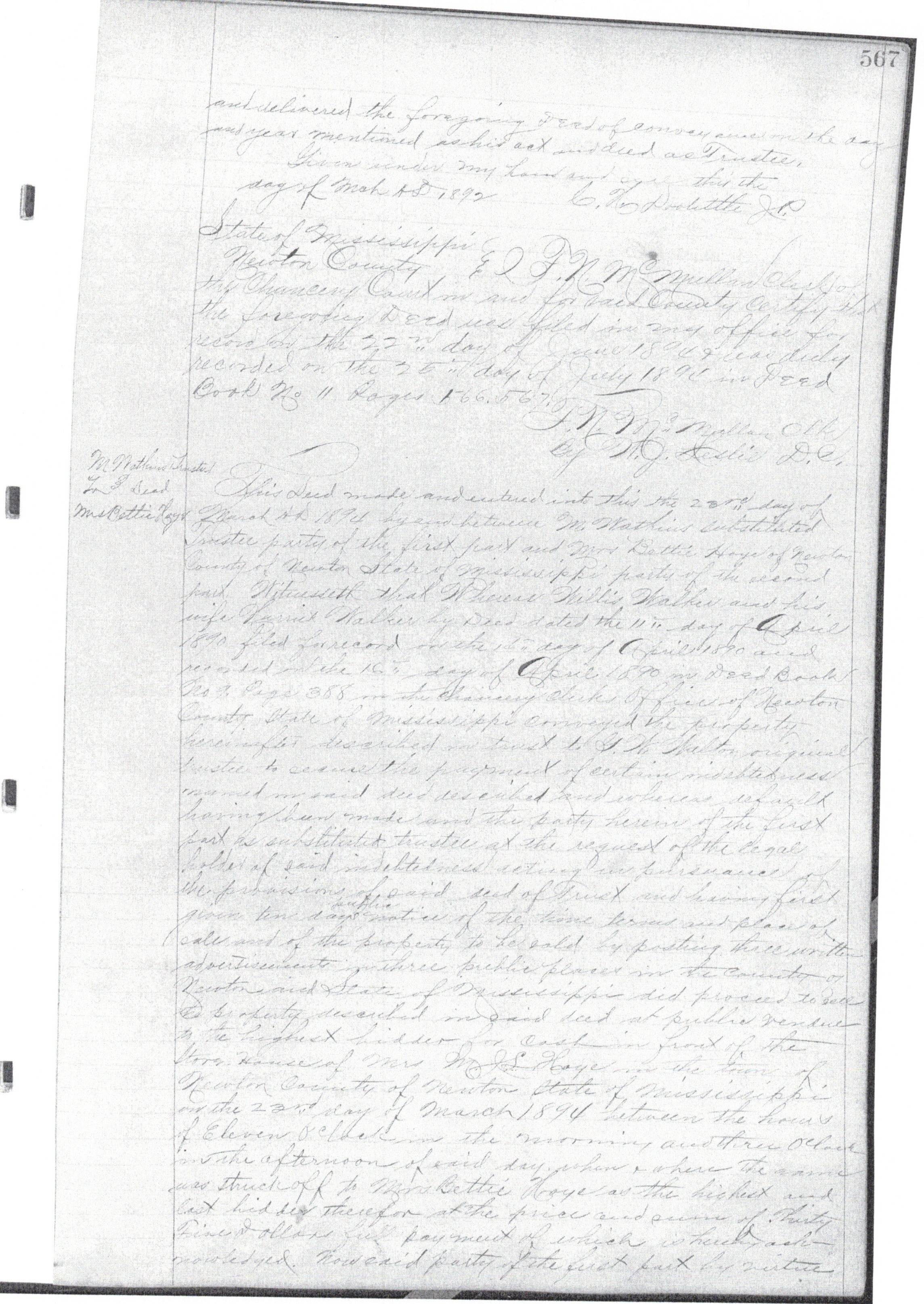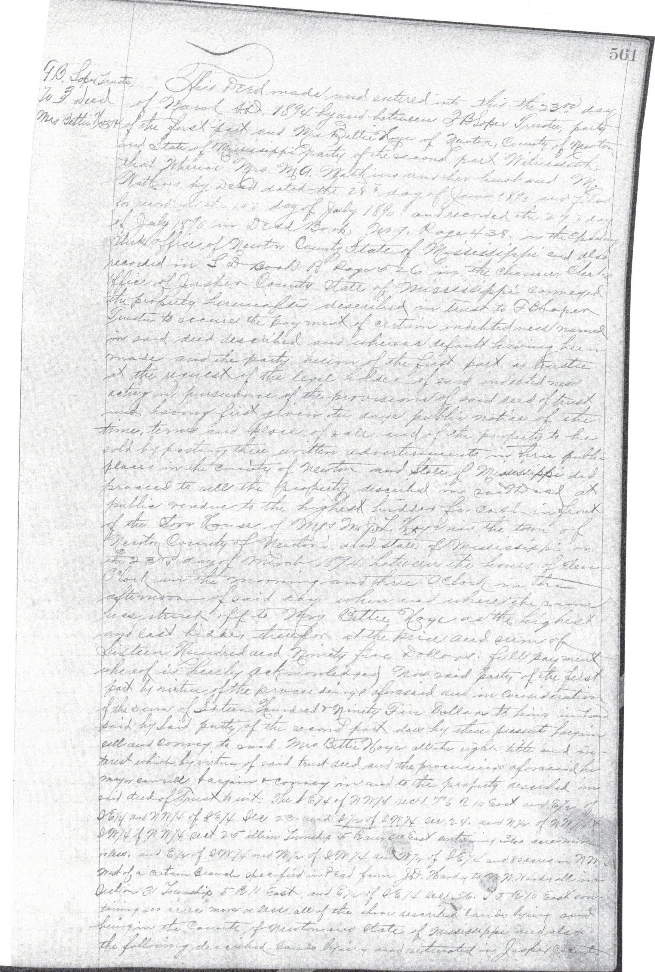 | 7 | J.B. Loper, Trustee (Margarett Watkins & Husband) | Mrs. Bettie Hoye | 1894 | 11 | 561 – 562 | |