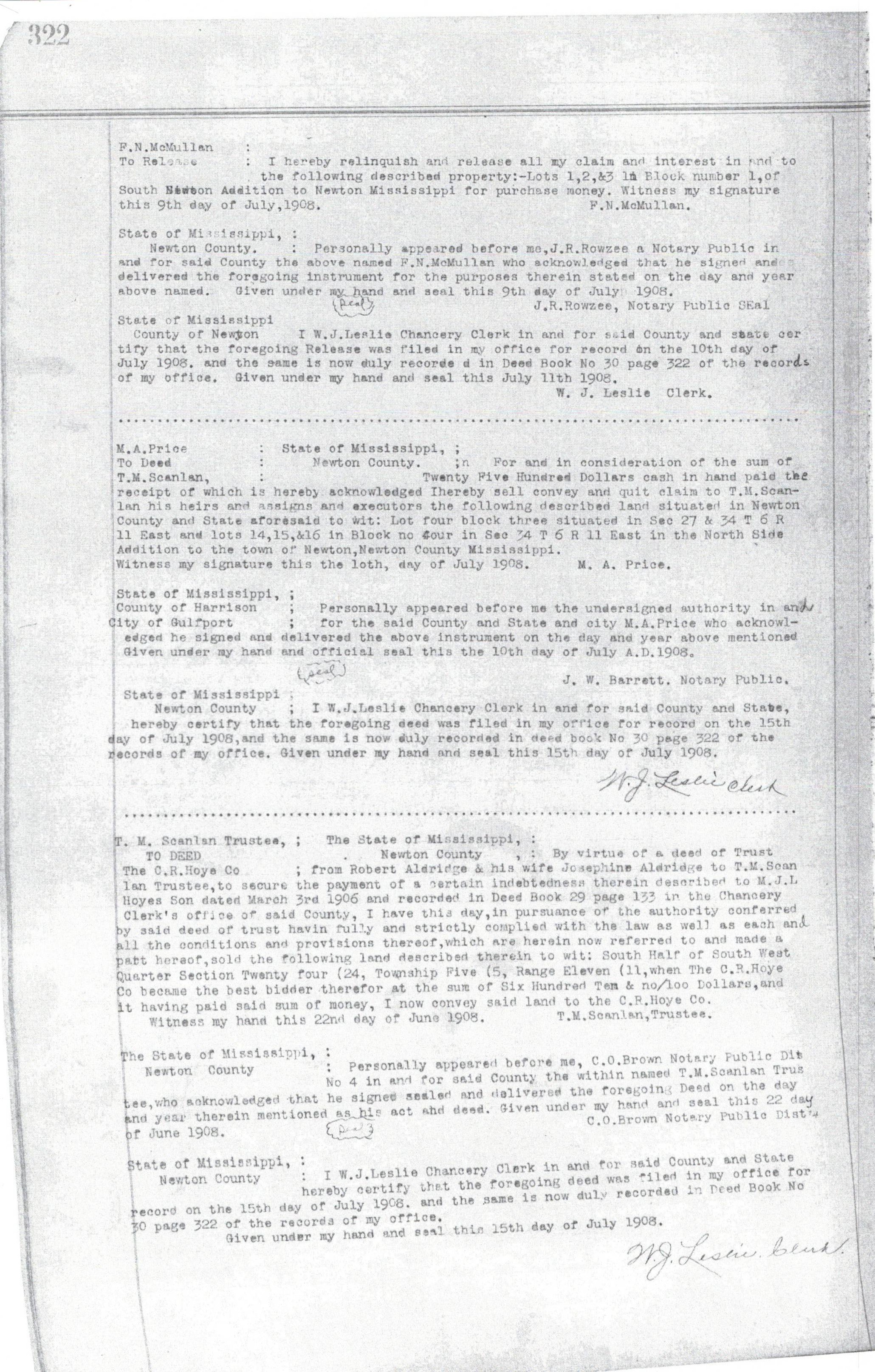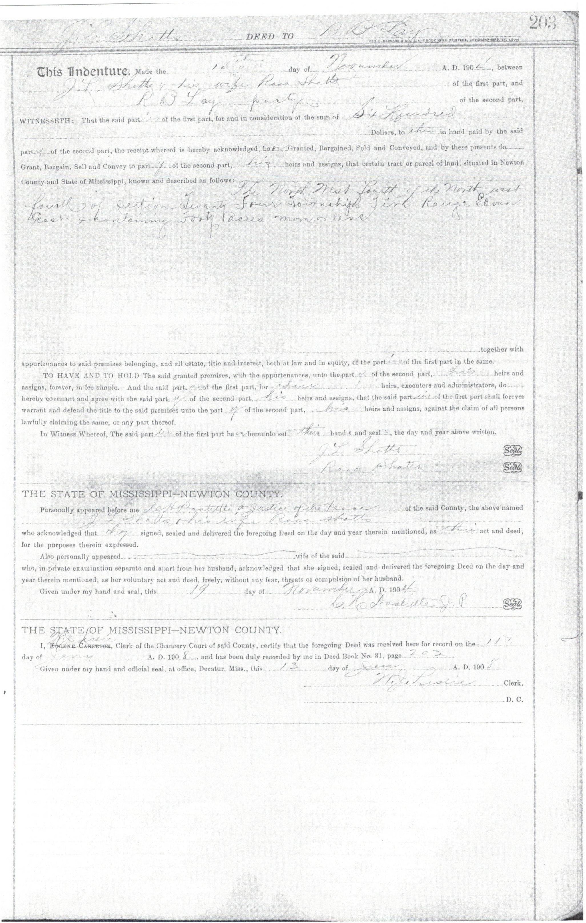 | $600 | 12 | J.L. Shotts & wife Rosa | R.B. Lay | 1904 | 31 | 203 |