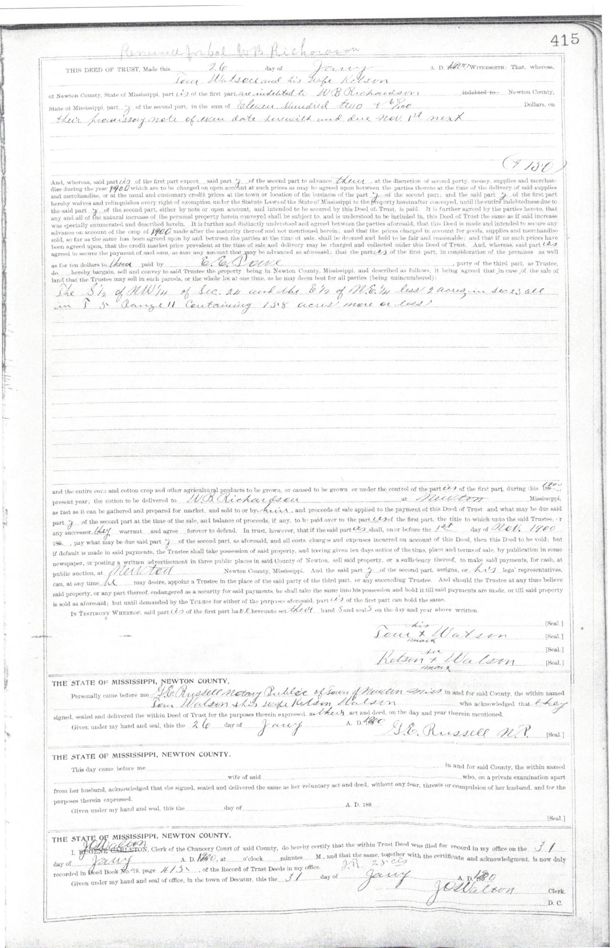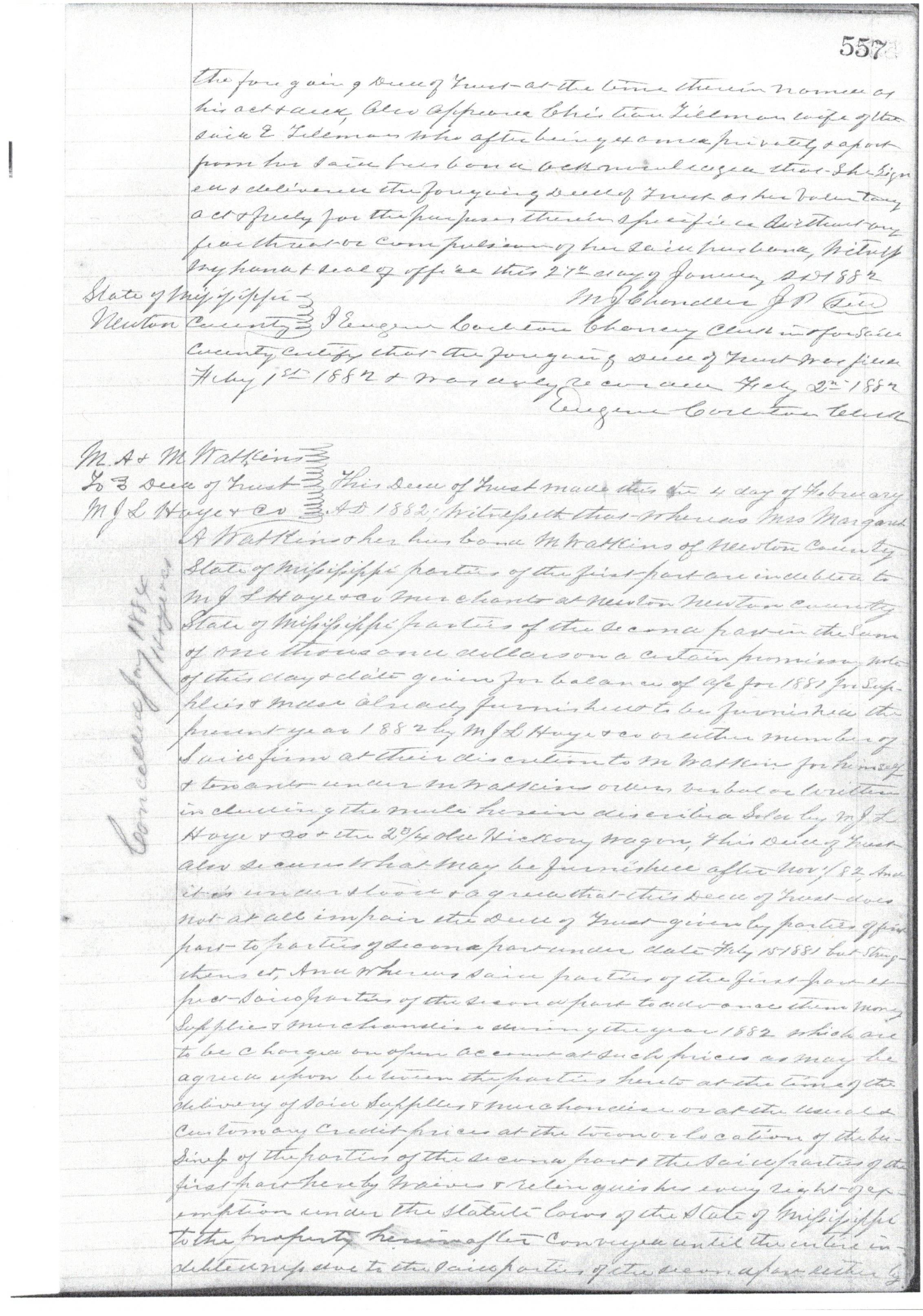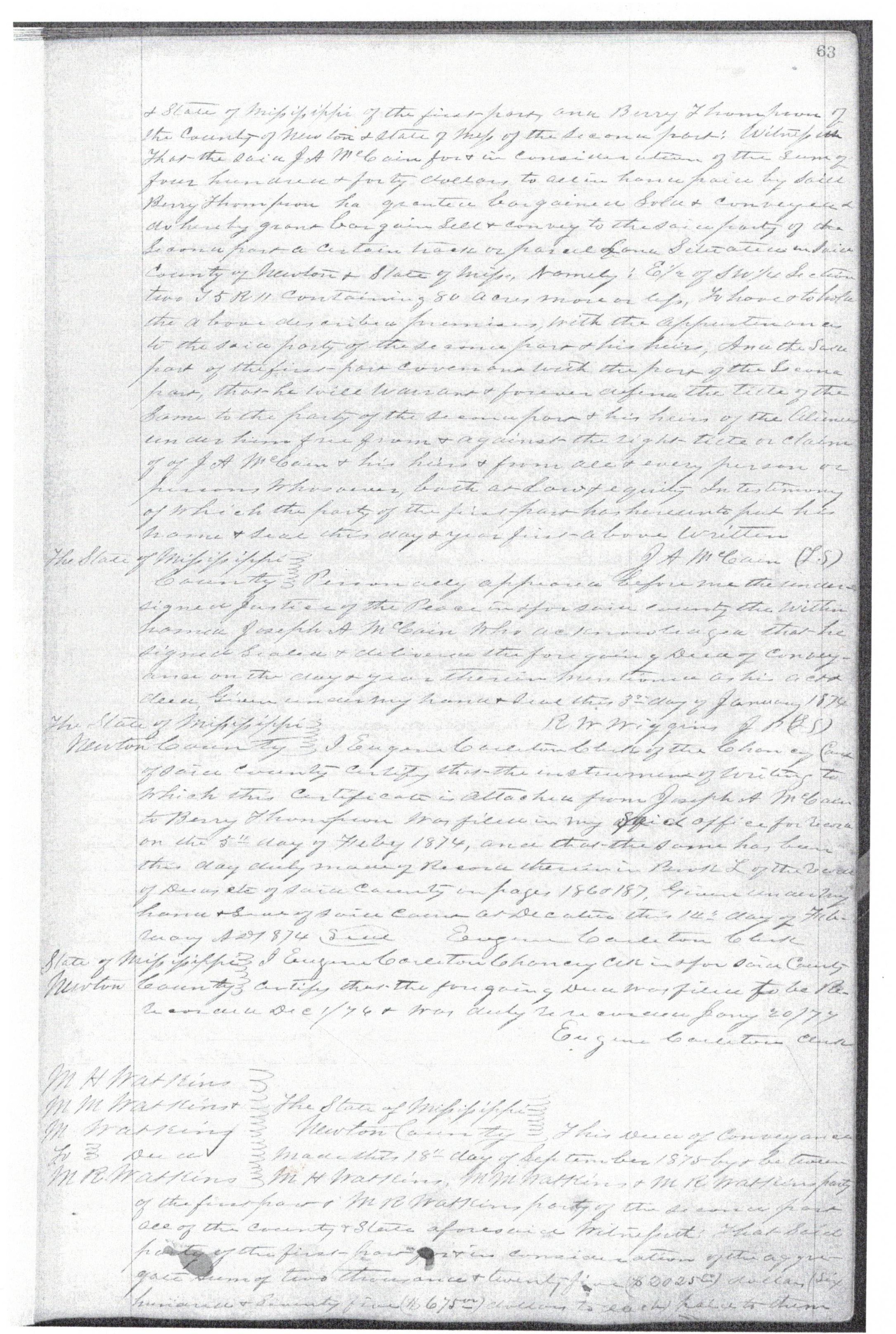 | 3 | M.R. Watkins wife L.E. Watkins | Joseph McCain | 1877 | 1 | 146 147 | |