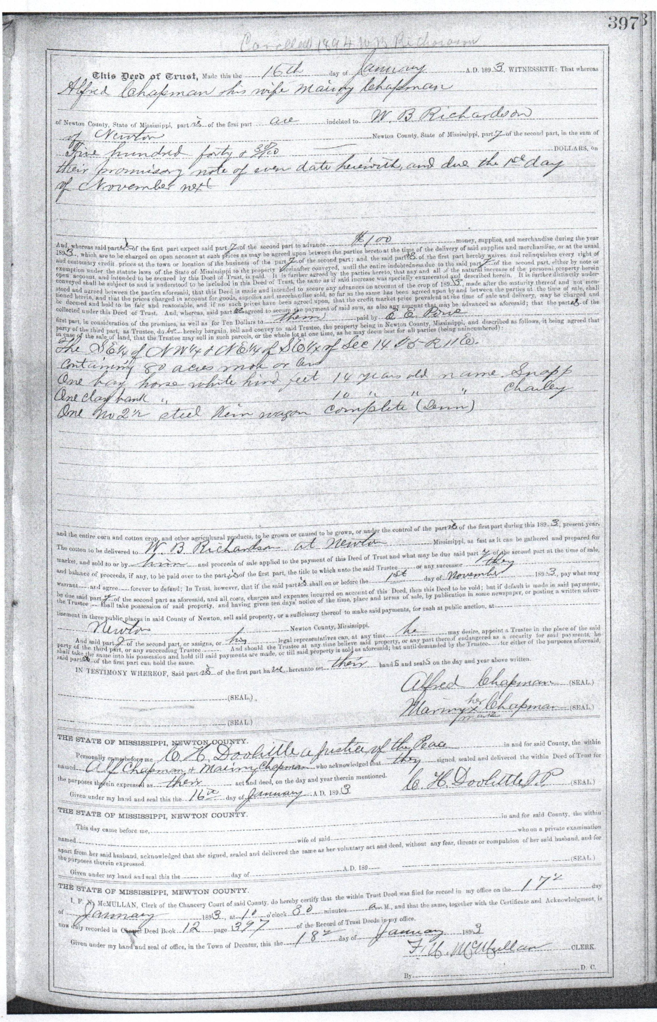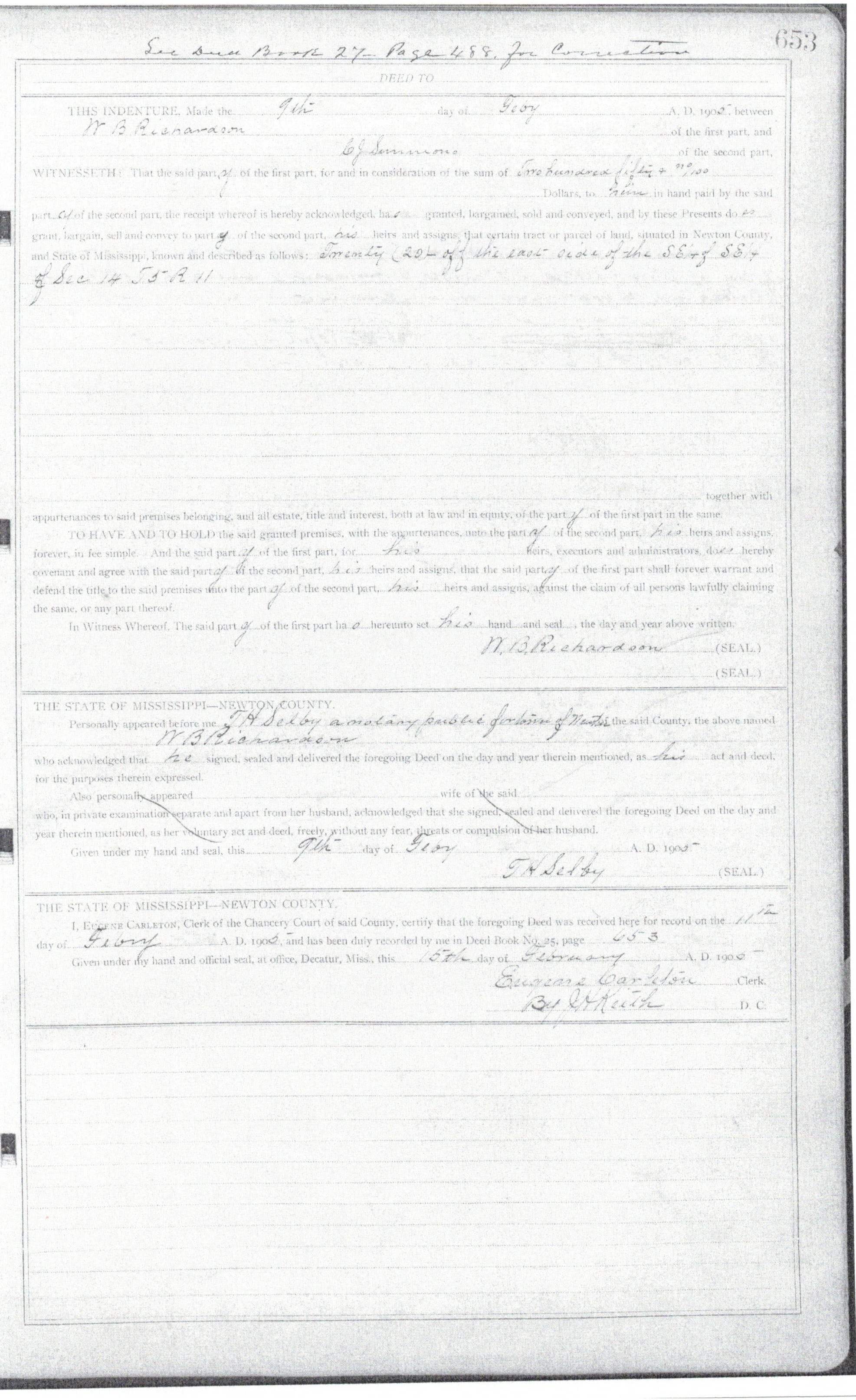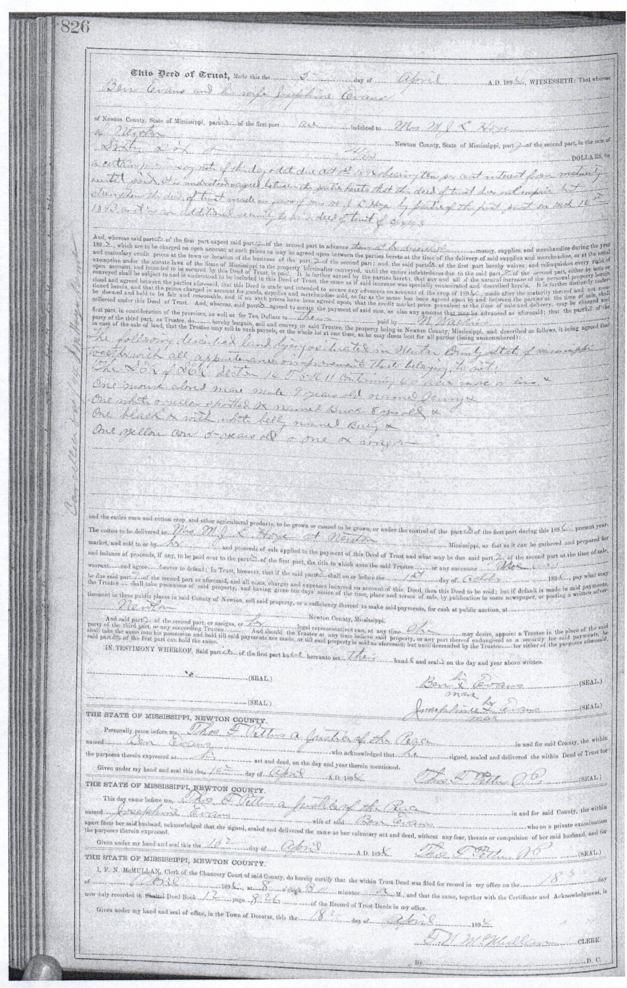 | $400 | Mattie M.& R.V. Mathis | E.E. Woodham | 42 | 433 | 1919 | |