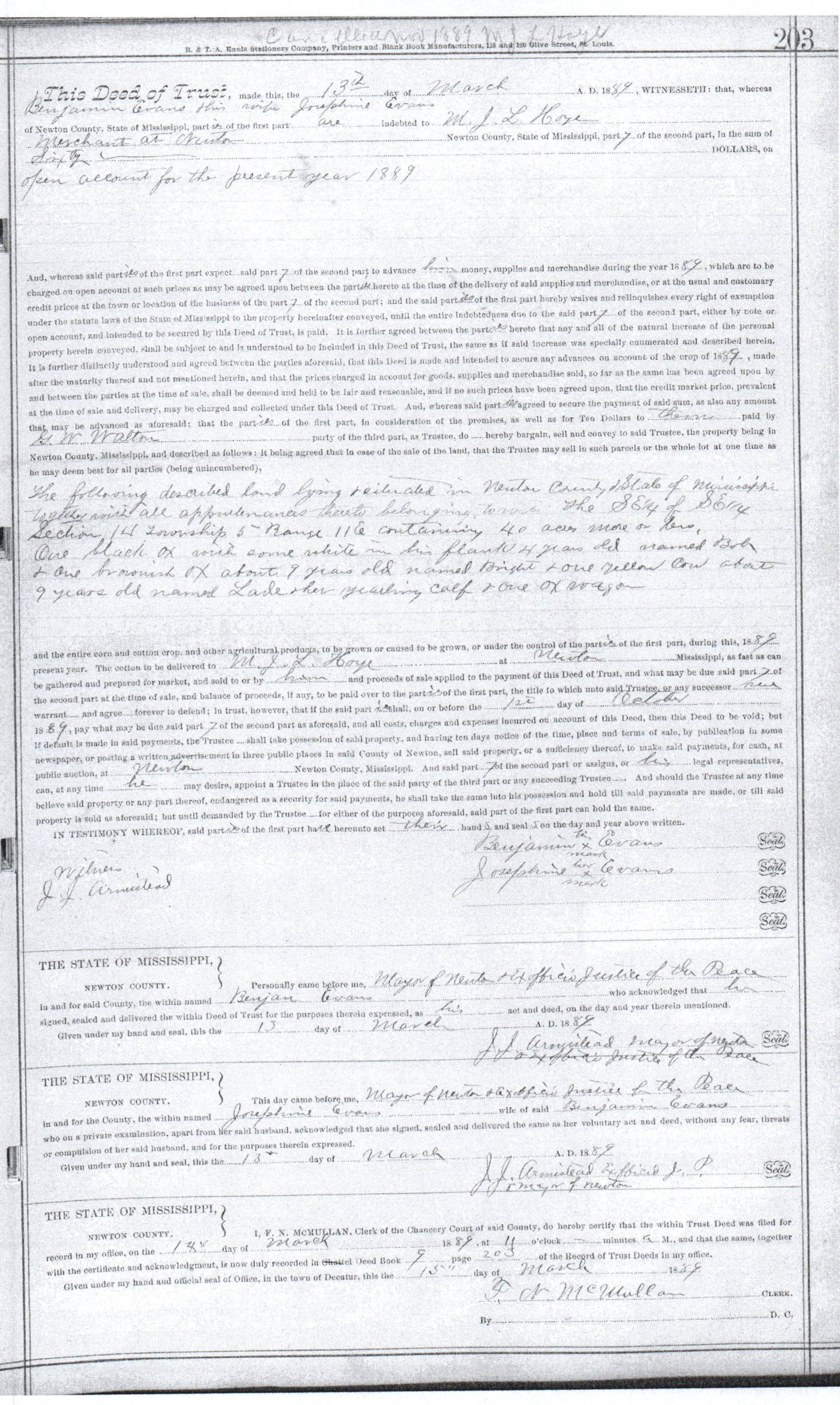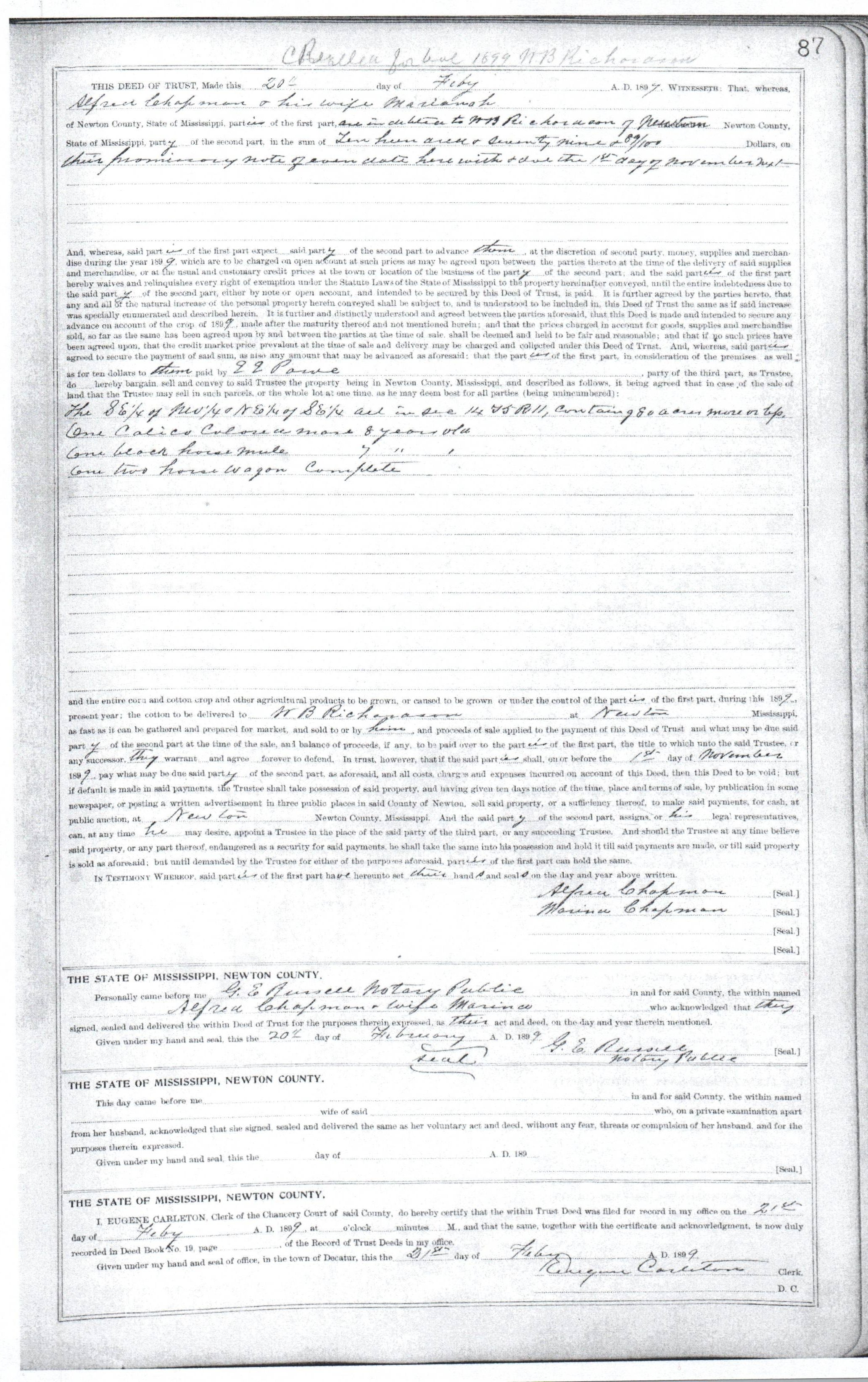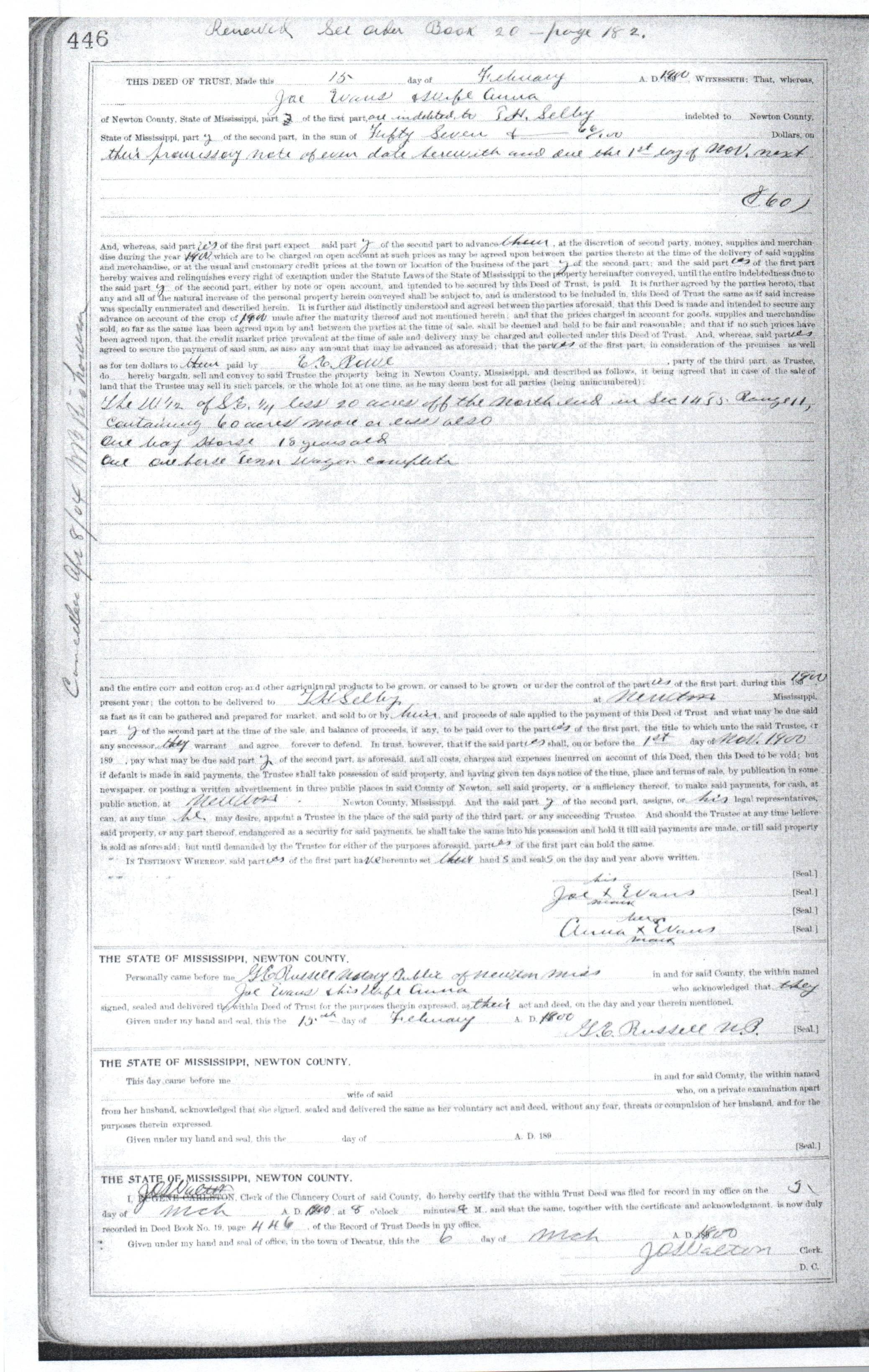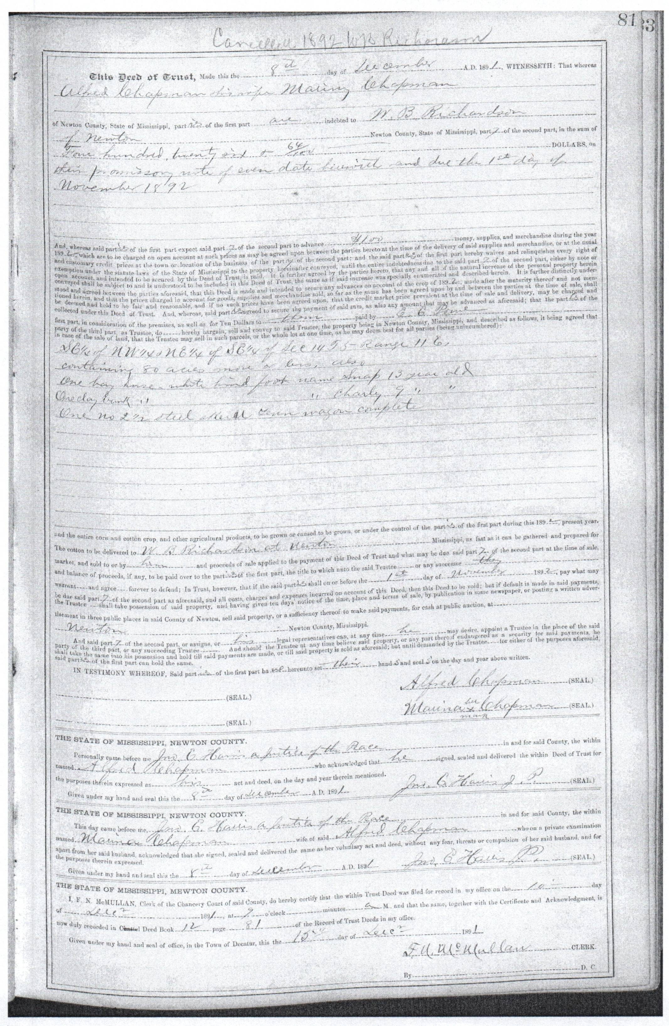 | $400 | Mattie M.& R.V. Mathis | E.E. Woodham | 42 | 433 | 1919 | |