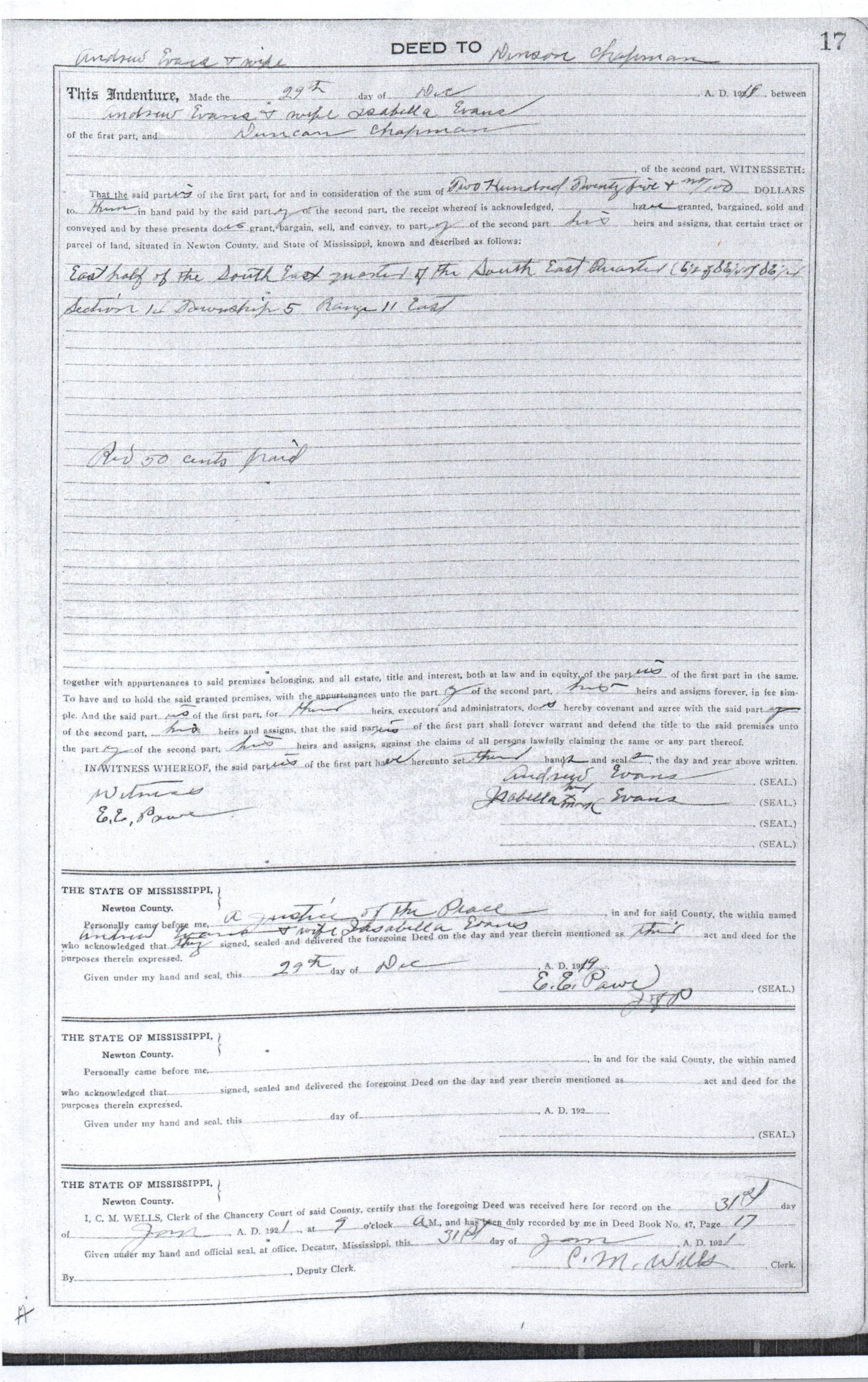 | $225 | Andrew Evans/wife Isabella | Denson Chapman | 47 | 17 | 1919 | |