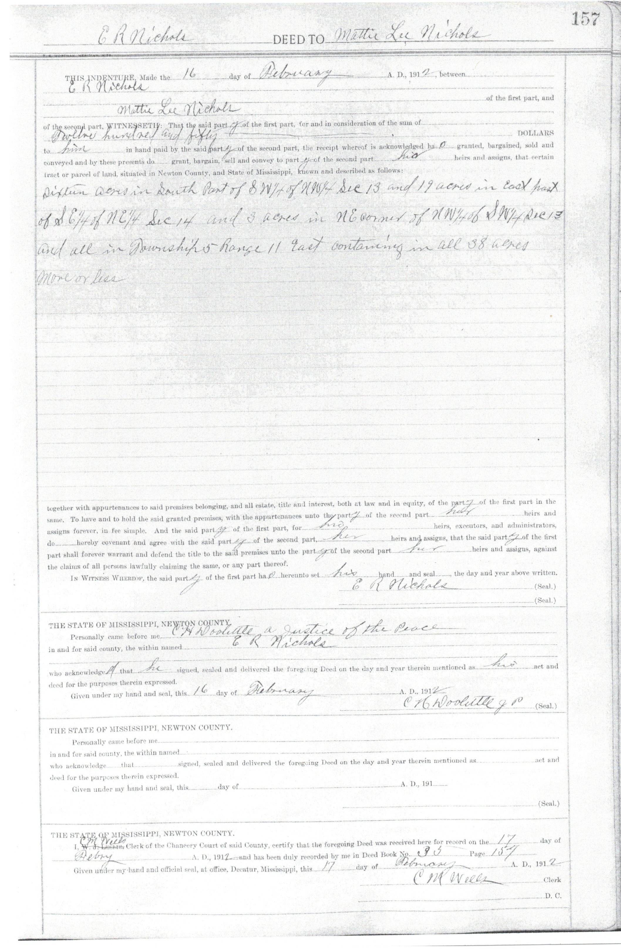 | $1250 | E.R. Nichols | Mattie Lee Nichols | 35 | 157 | 1912 | |