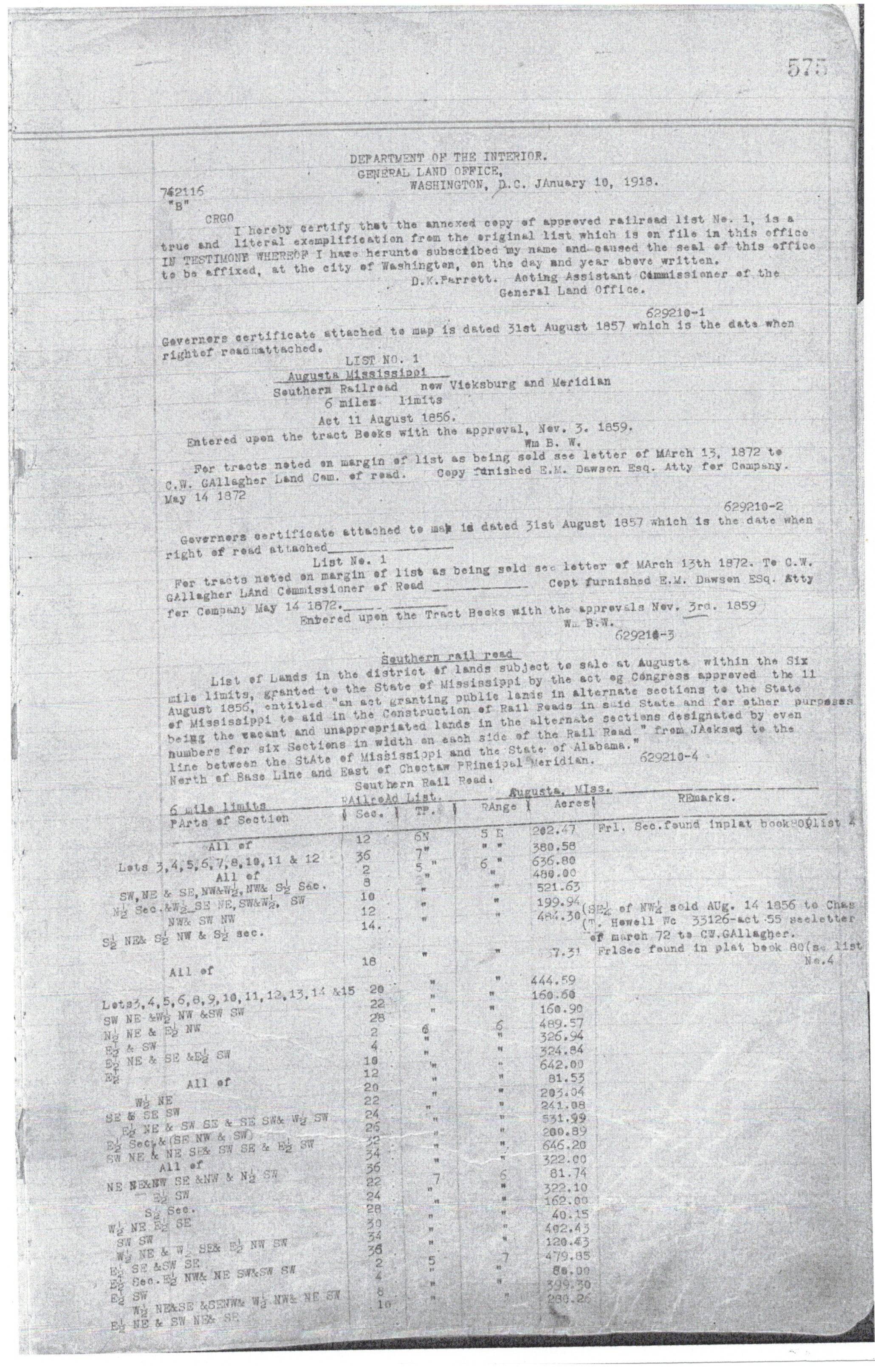 | U.S.A. | Southern Rail Road Co. | 40 | 575 – 576 | 1859 | ||