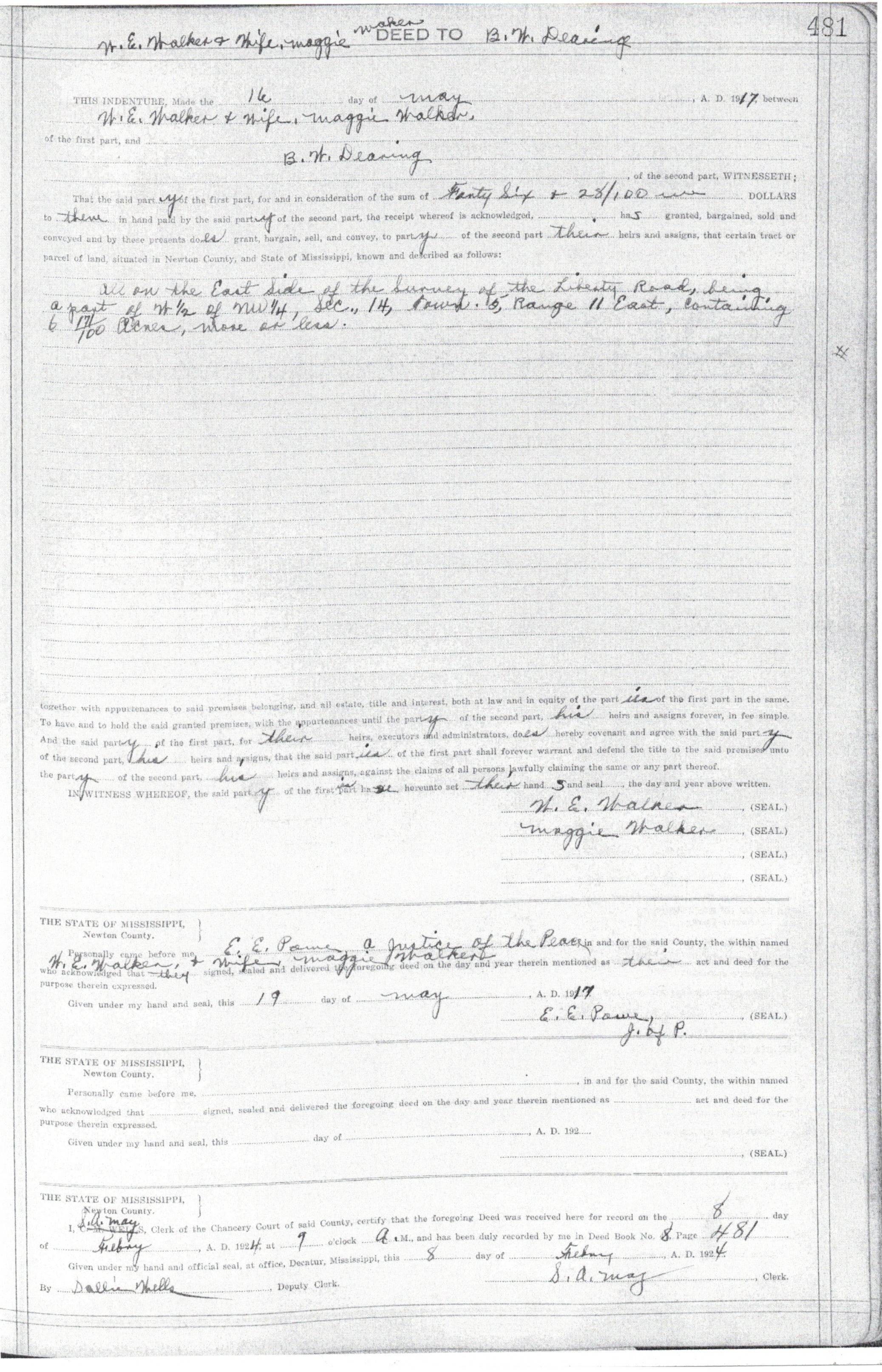 | $46 | W.E. Walker & wife Maggie | B.W. Dearing | 48 | 481 | 1917 | |